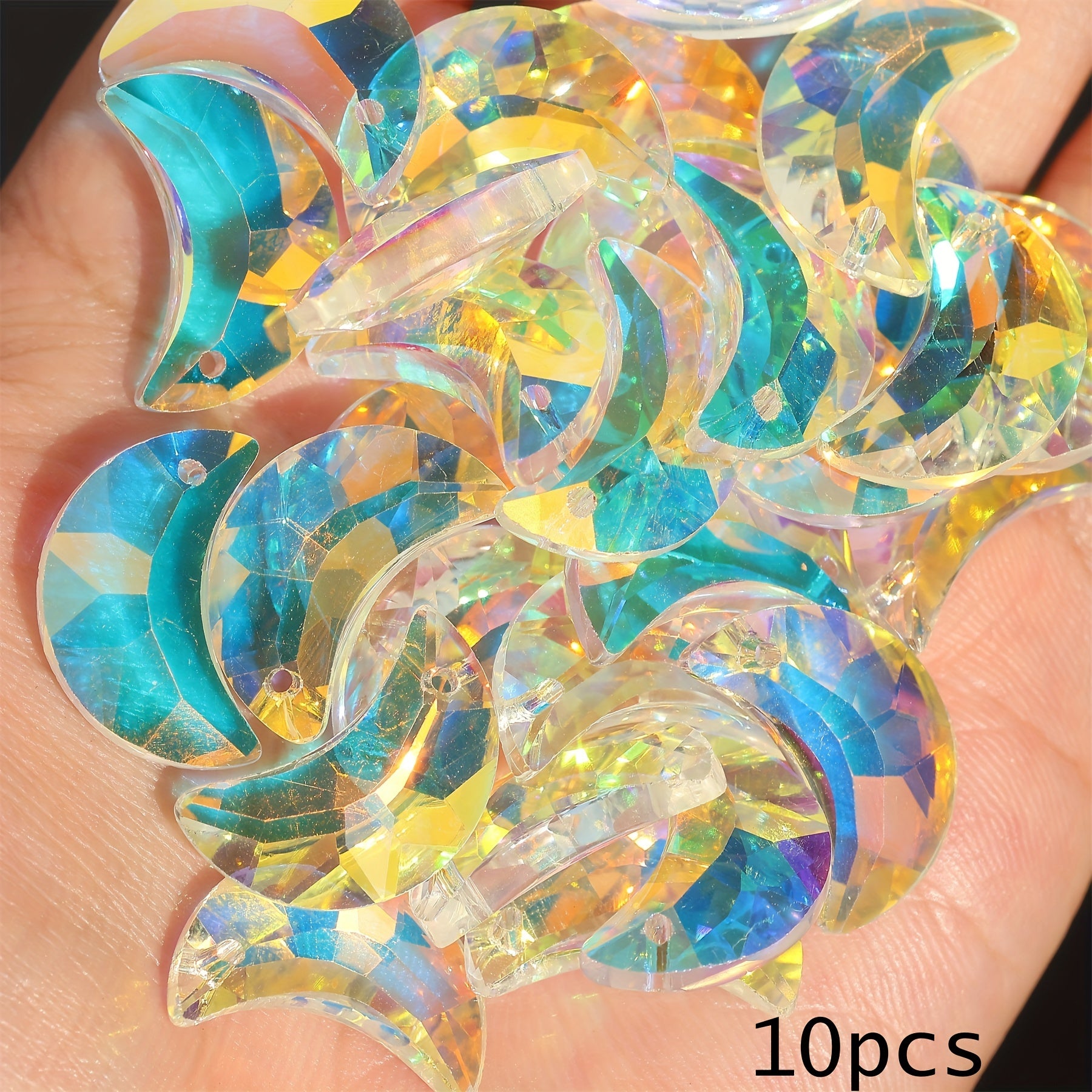 10pcs/50pcs ''Handmade''20mm Single Hole Moon Glass Crystal Beads, Colorful Prism Suncatcher Charm DIY Jewelry & Decoration Crafts