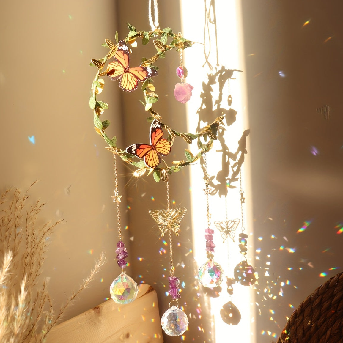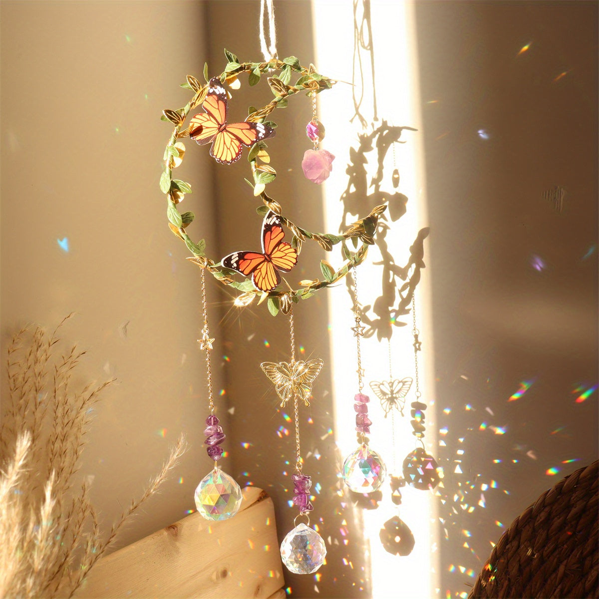 · Beautiful and Elegant: Crystal sun catcher and moon wind chime pendant add a touch of elegance to any space