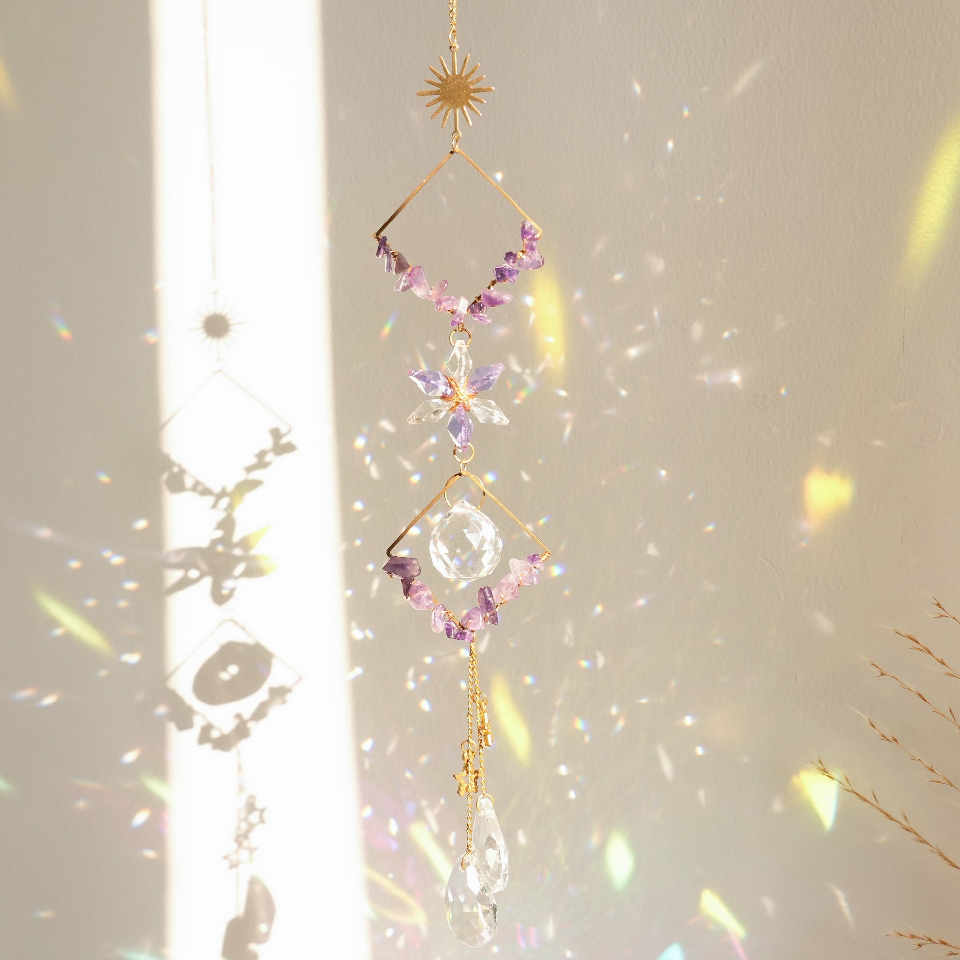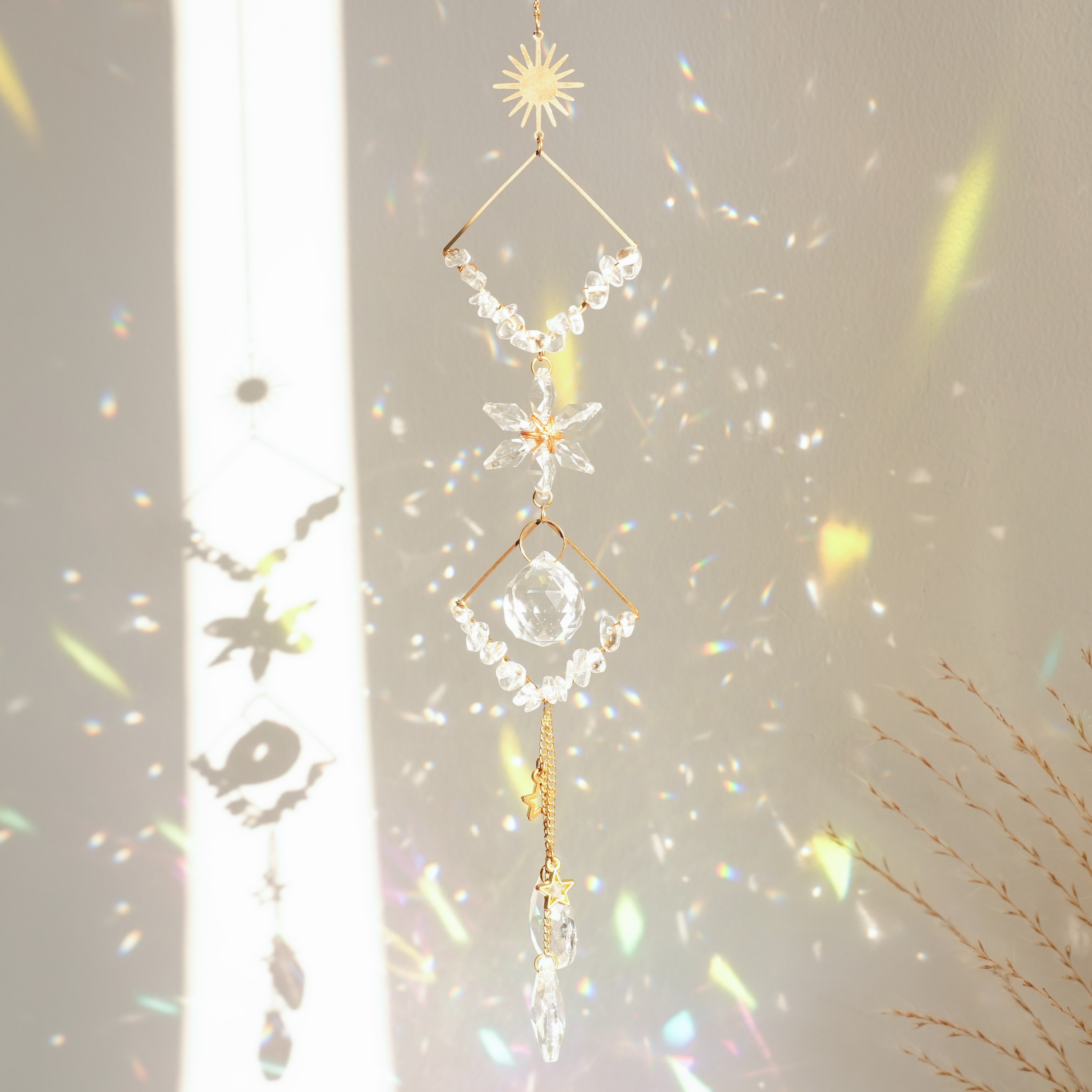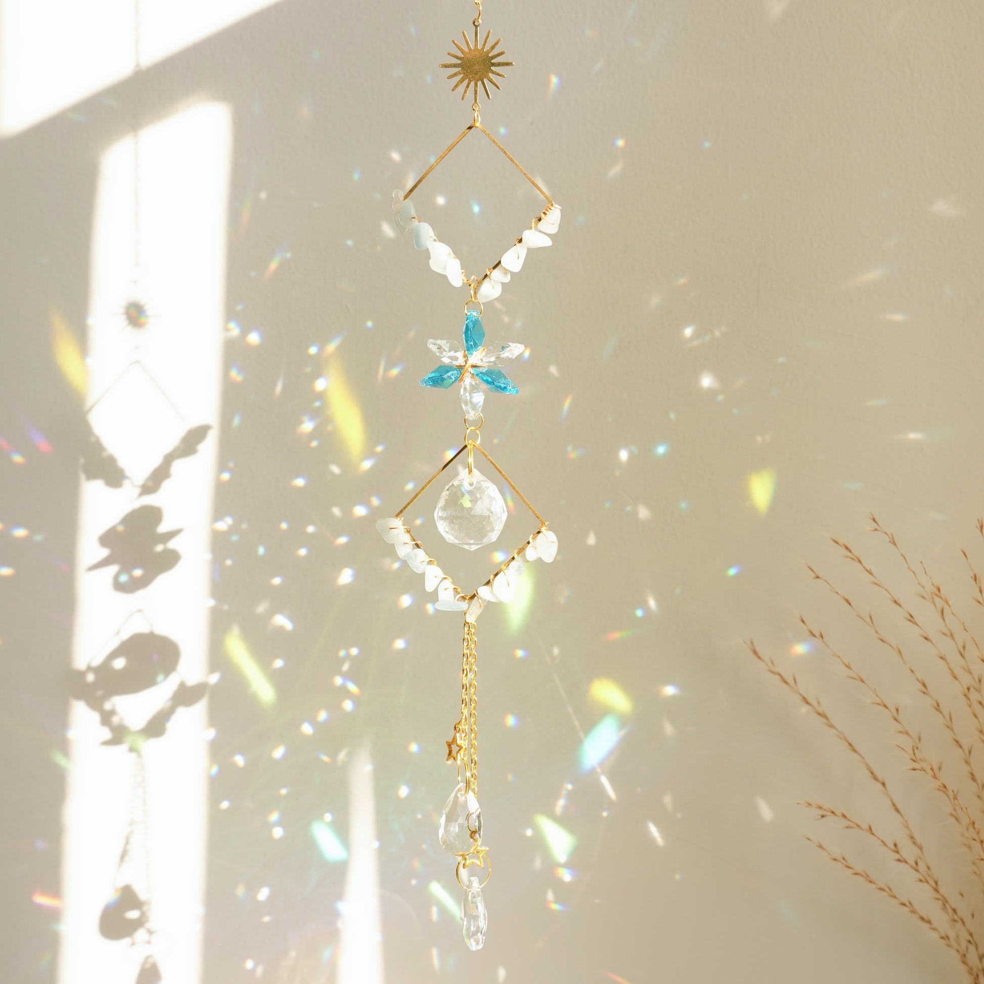 1pc Crystals Suncatcher Checkered Wind Chimes Crystal Ball Rainbow Maker Prisms For Indoor Window Car Charm Garden Outdoor Decor