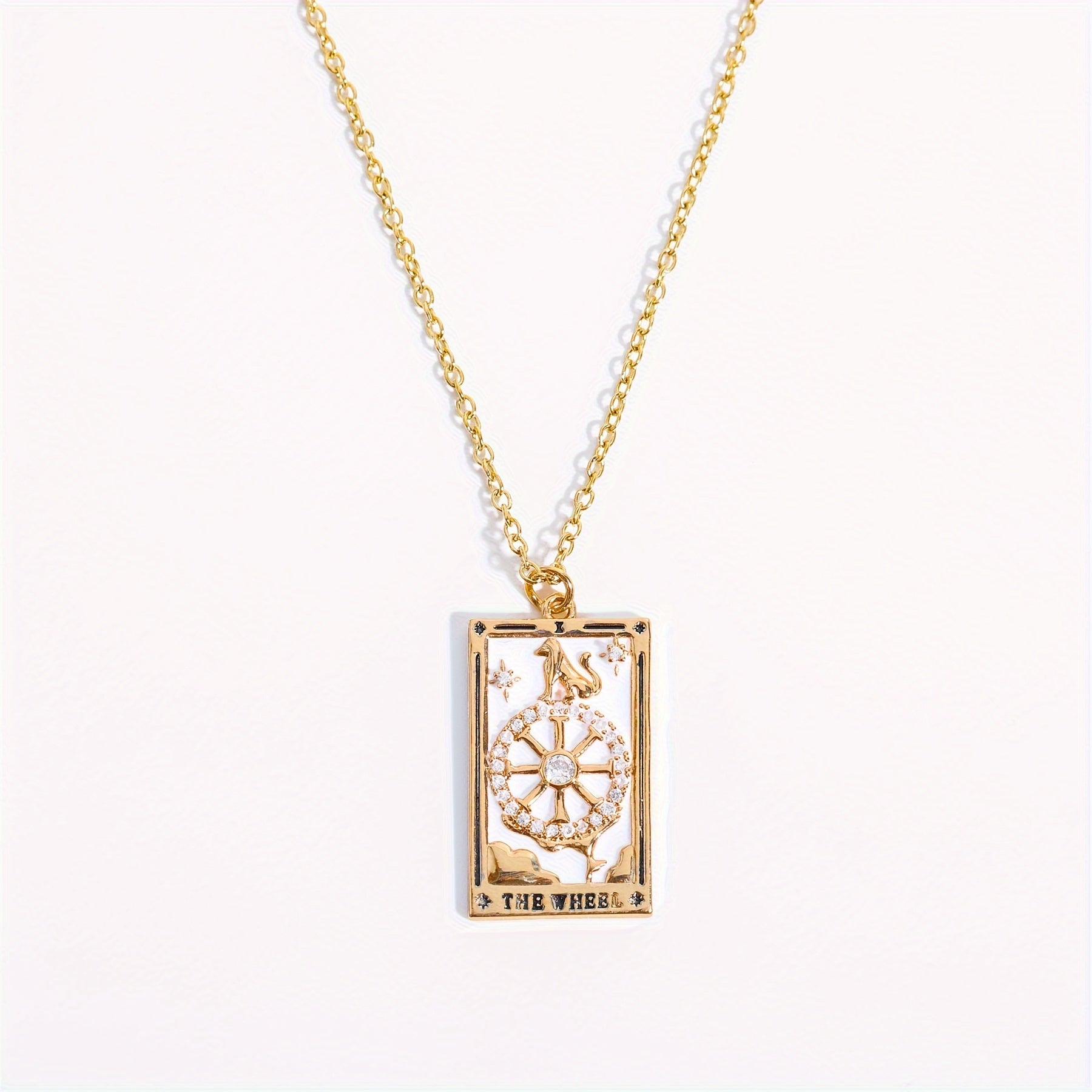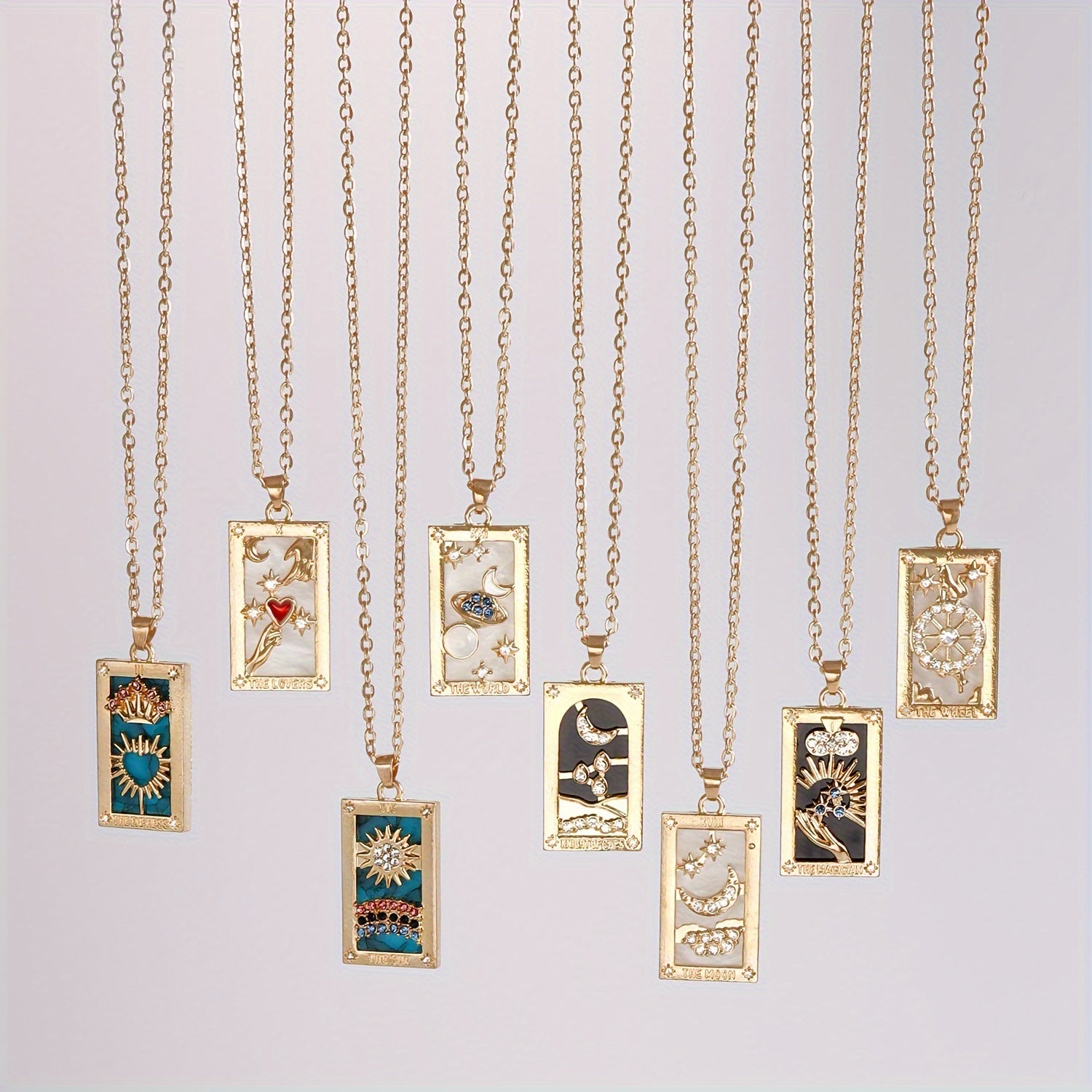 1pc Vintage Tarot Necklace with Sun Moon Heart World Card Pendants - Golden-Tone -Coated Astrology Symbols, Elegant Celestial Jewelry for Women, Casual Attire & Gift Idea, Zodiac Jewelry, Intricate Detailing, Bead Chain