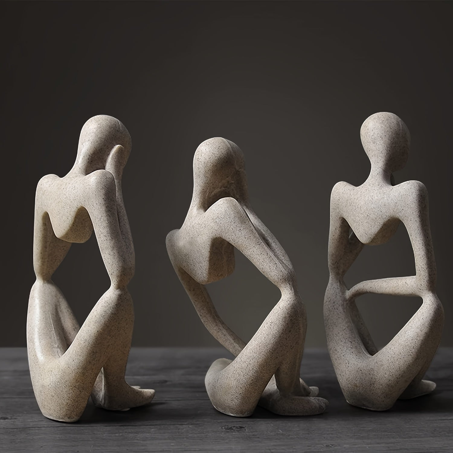 3pcs Modern Abstract Thinker Statue Sculpture Resin Statues For Bookshelf Decor Home Decor Home Office Shelf Desktop Decor