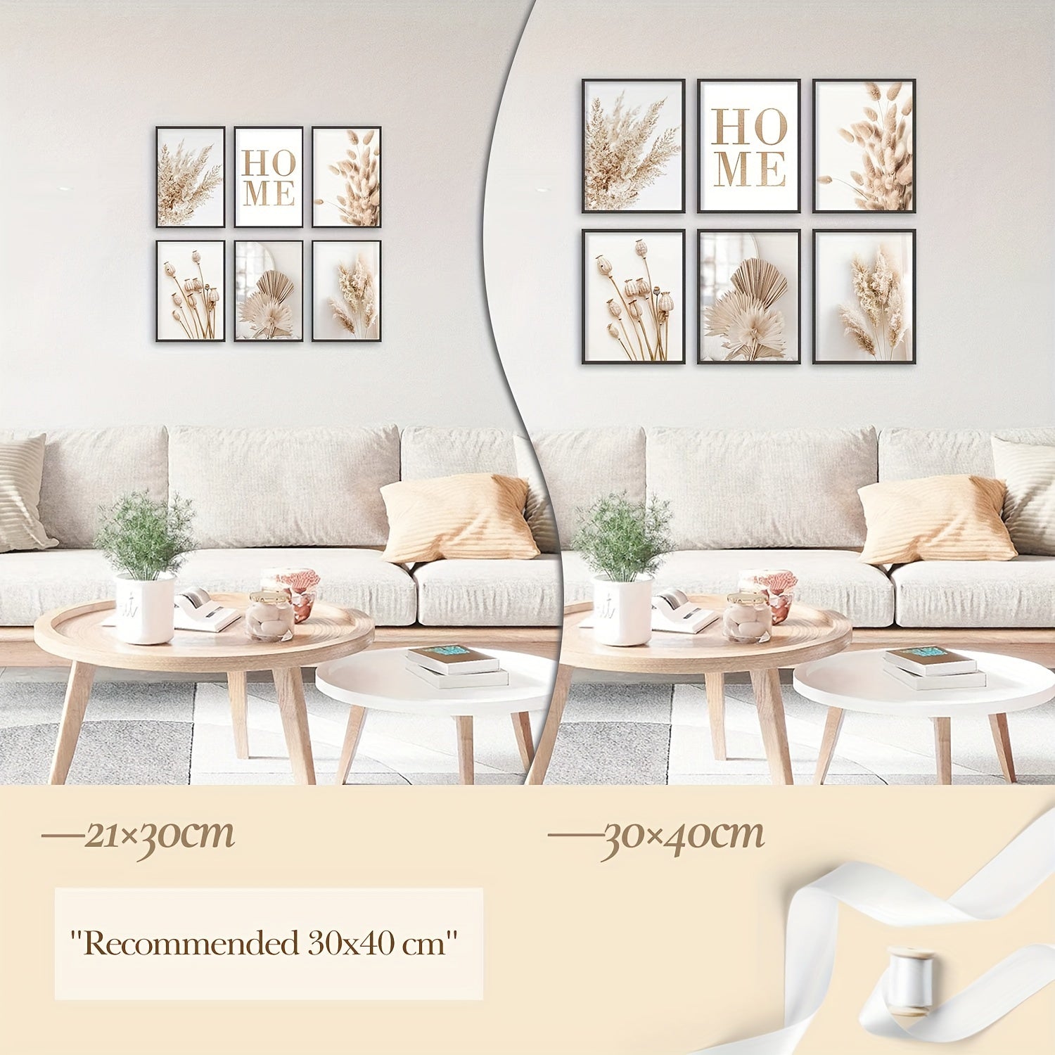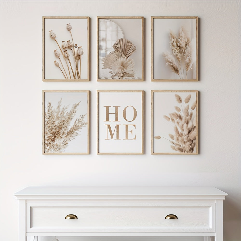 6/3pcs Beige Canvas Painting Panas Grass Poster Hay Wall Art Flames Leaf Wall Art Fan Leaf Print Plant Specimen Art Print Nordic Wall Poster Home Decor Frameless
