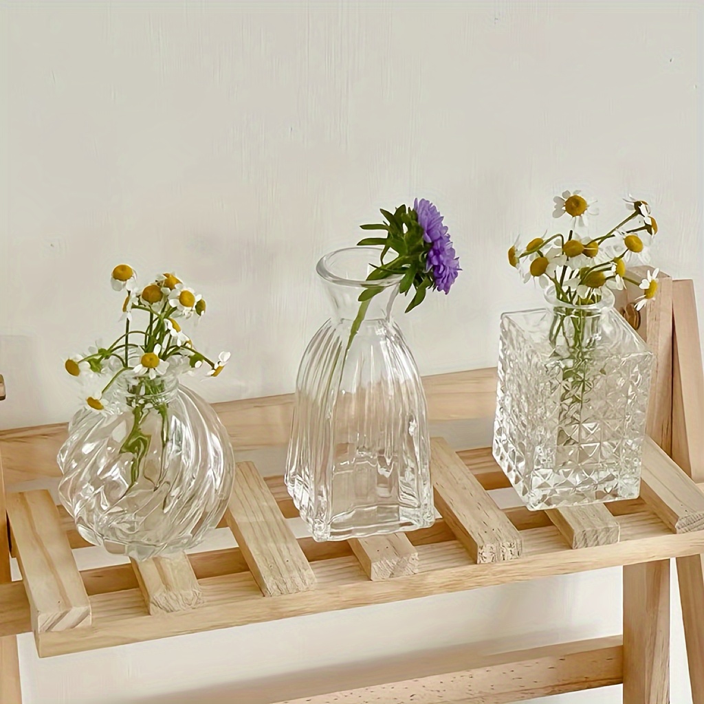 7pcs Glass Vase Set, Retro Transparent Glass Bud Vase, Crystal Mini Flower Decorative Vase, Antique Decorative Small Opening Short Vase, Multi-Countryside Aesthetic Wedding Table Center