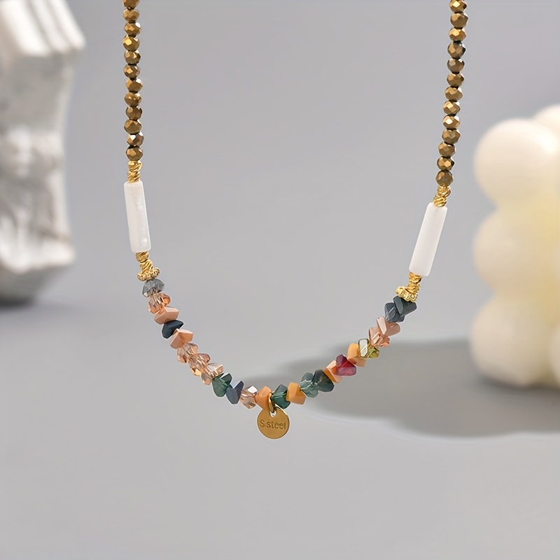 Bohemian Beaded Necklace for Women, Elegant & Cute Style, Artificial Crystal, Versatile for Daily & Party Occasions, All-Season Accessory, Random Bead Colors