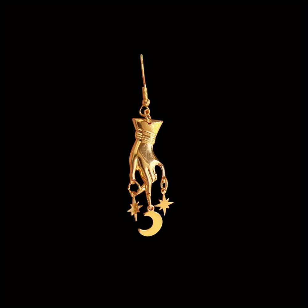 Bohemian Style Finger-Shaped Moon and Stars Pendant Earrings, Gothic Fashion Simple Party Gift, Iron Material with Iron Ear Needle, Non-Magnetic