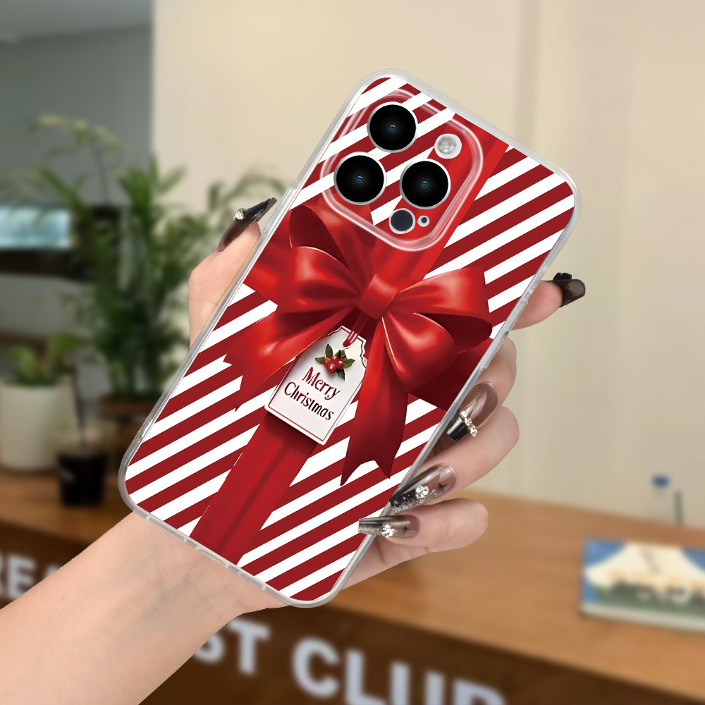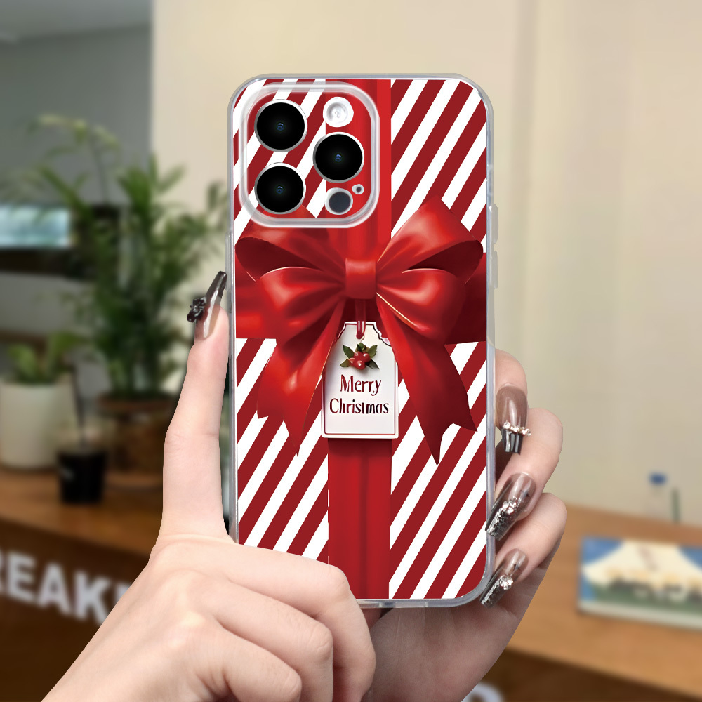 Christmas Bow Gift Box Simple Print Mobile Phone Case, Mobile Phone Case Suitable for iPhone 16/15/14/13/12/11/X/XR/XS/8/7/SE Mini Plus Pro Max Series Crystal Transparent Full Protection Mobile Phone Case