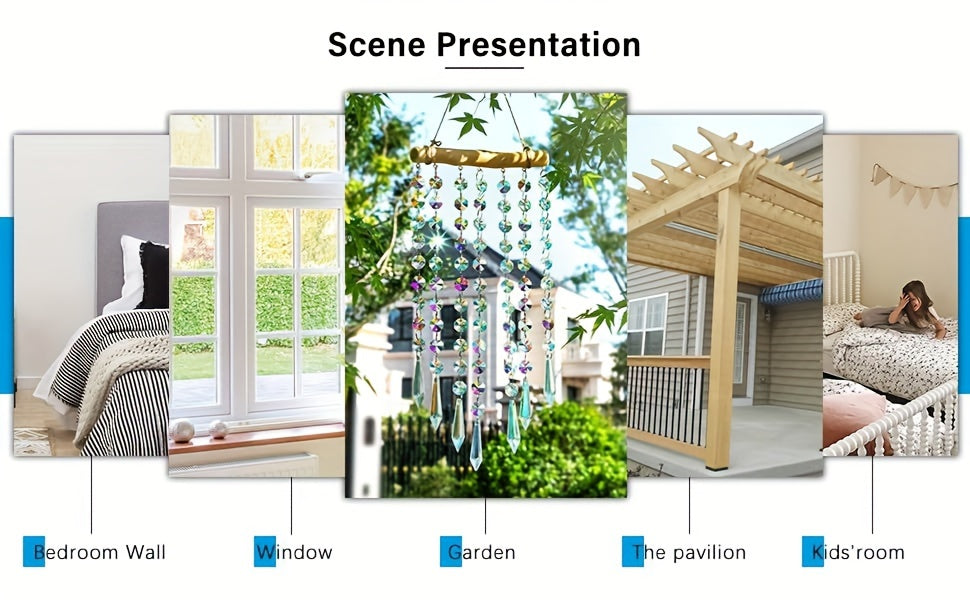 Handmade Garden Suncatcherss with Crystals Stones, Reflect Sunlight & Rainbow Maker Crystal Garden Suncatcherss Hanging Wind Chime, Yard Art Decor, Garden Garden Suncatcherss