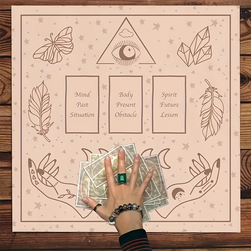 Mystical Pink Butterfly & Moon Phase Tarot Card Reading Cloth – 1pc Handmade Woven Polyester Altar Tablecloth for Divination & Room Decor, Rectangular Shape, 100% Polyester Material