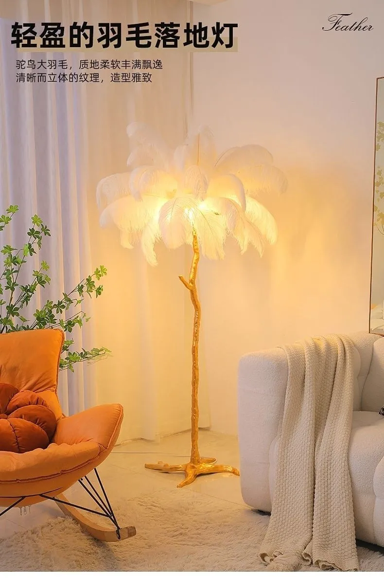 Nordic Creative Feather Design Floor Lamp for Living Room Bedroom Office or Hotel Decoration